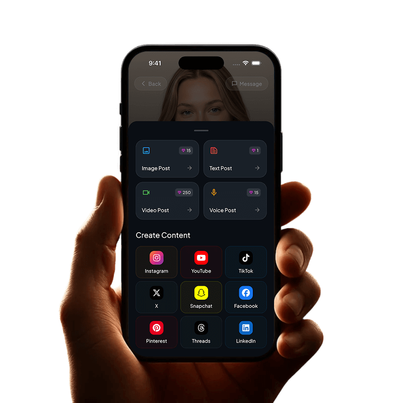 Produce scroll-stopping AI images, short-form videos, and UGC or branded content in seconds. From luxury lifestyles to everyday moments, bring your influencers to life across every platform.